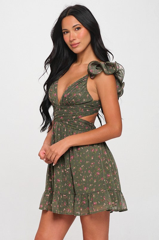 Olive Open Back Mini Dress